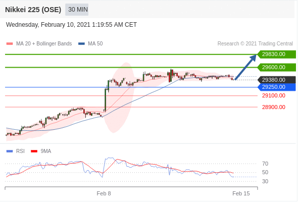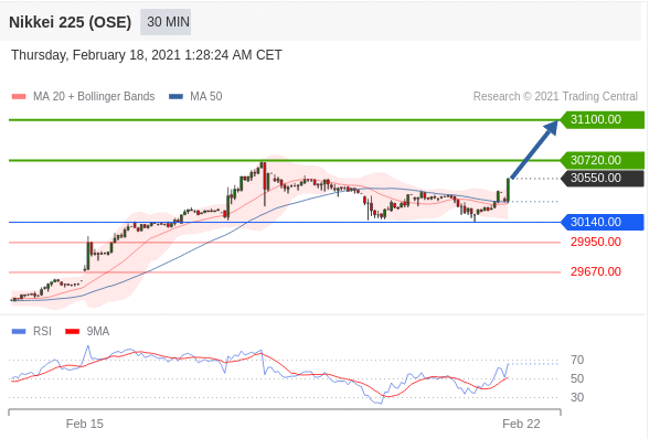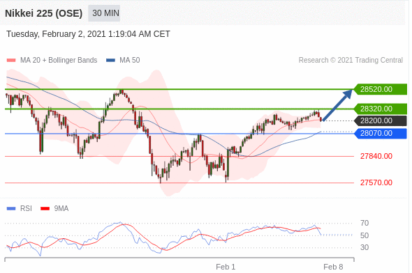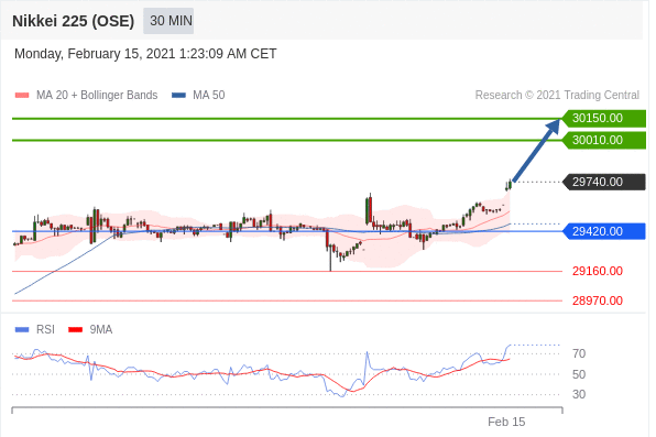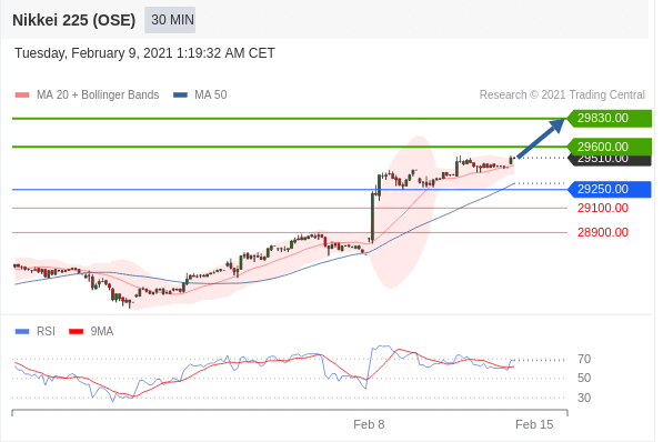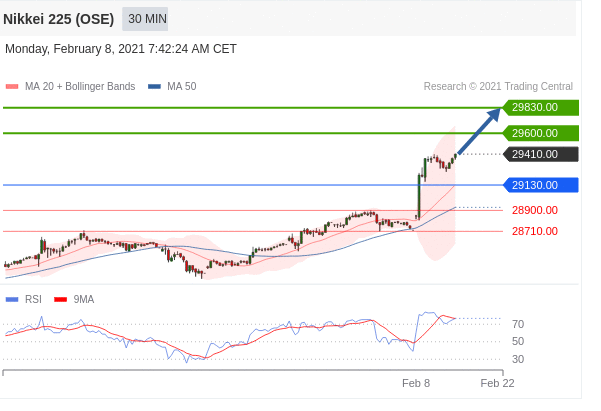 周一经济事件清淡且消息面平静,亚太股市跟随美股和美债收益率上涨。亚太股市因美国新冠疫情财政刺激计划和新冠病毒疫苗接种获得提振,未受美国与伊朗关系紧张和一些亚太地区事件影响。 因此,CI亚洲除日本指数上涨0.71%,日本日经225指数上涨2.10%,出现领涨,刷新20世纪90年代以来的高位。 除了美国政府官员发表最