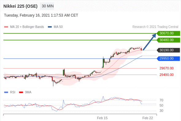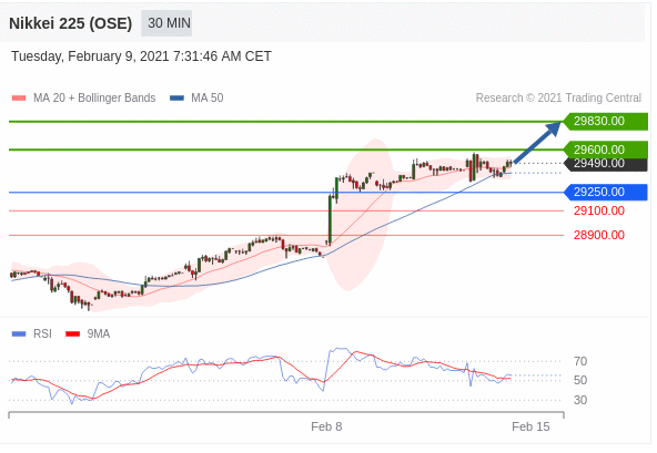 亚洲股市未受澳大利亚和新西兰股市疲弱的影响,周二维持上涨。因此截至发稿时,CI亚洲除日本指数上涨0.37%,日本日经225指数上涨0.14%。 尽管市场对美国1.9万亿美元新冠疫情财政刺激计划寄予较大预期,同时近期贸易方面的消息积极,提振市场情绪,日本推出紧急刺激措施且市场担忧太平洋国家(主要是澳大利亚和新西兰