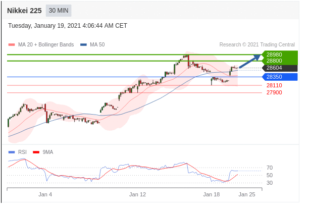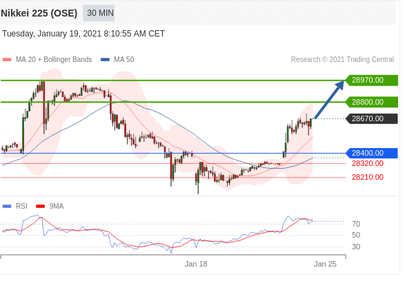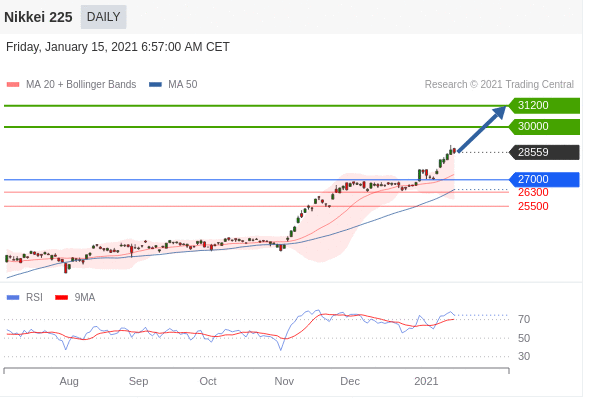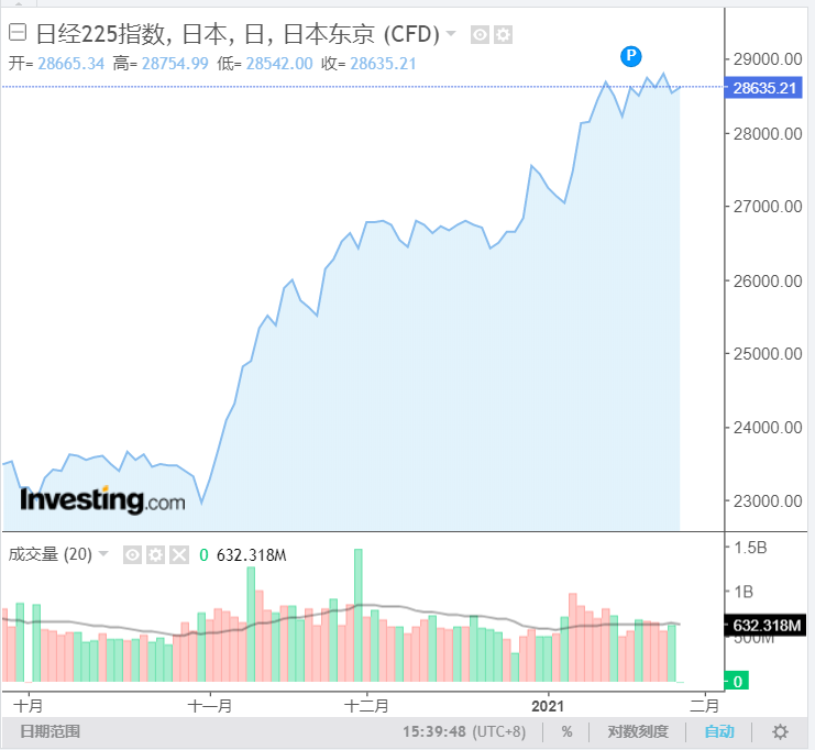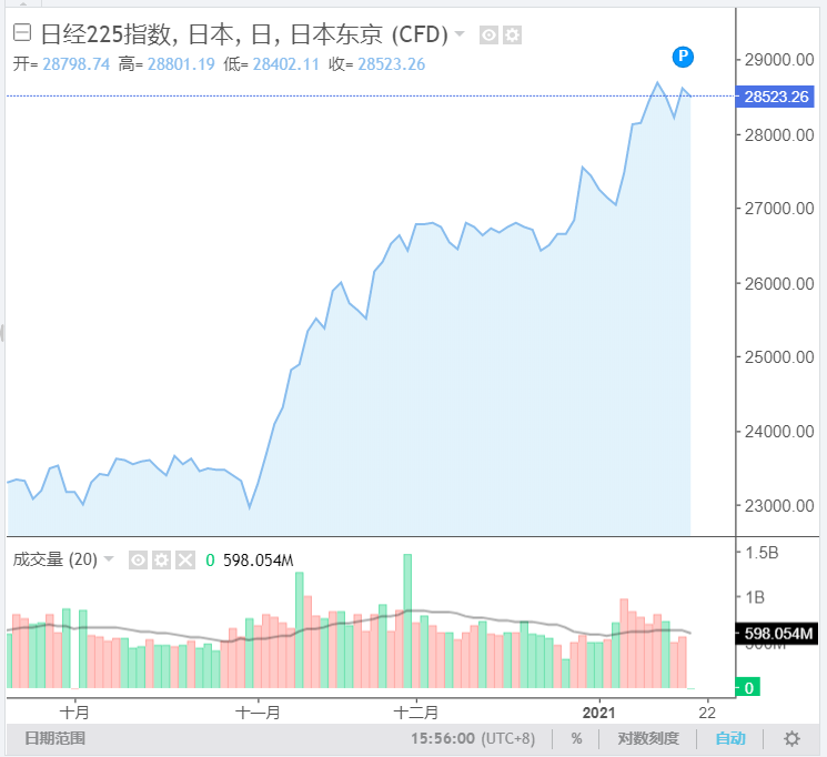 亚洲股市未因日本和澳大利亚股市上涨获得提振,中国股市早盘下跌。美国将推出更多刺激计划,新增新冠病毒病例出现激增已经提振多头,二级数据得以公布,美国当选总统拜登将举行就职典礼前市场维持谨慎,多重催化剂测试市场乐观情绪。 受上述因素影响,CI亚洲除日本指数上涨1.48%,触及历史高水平,发稿时日本日经225指