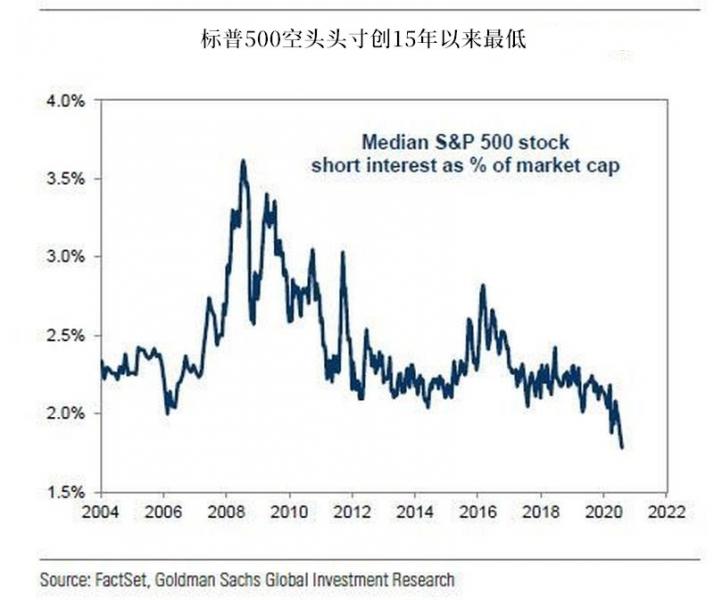 根据高盛最新的对冲基金追踪报告,标普500的空头头寸已降至15年以来的最低水平。同时报告也显示,对冲基金结清空头头寸时也在忙于增加多头头寸。