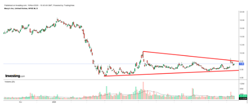和富乐客形成鲜明对比的是,梅西百货(M.US)的股价在2020年的大部分时间里一直处于螺旋形下跌的趋势中,这家连锁百货巨头正在努力寻找新方法来赢得购物者们的心。