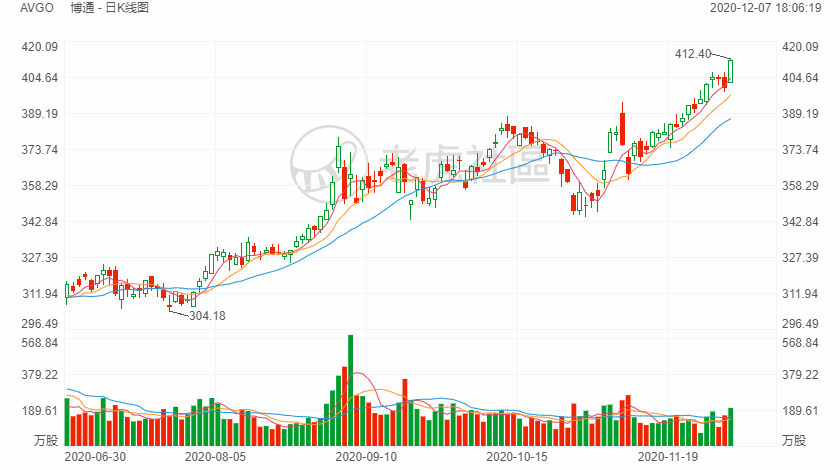 博通股价在3月份下跌之后已经强劲反弹,上涨了140%以上。该股在周五上涨近3%,收报411.68美元。