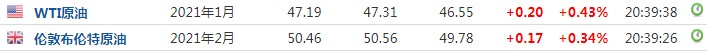 截至发稿,WTI原油涨0.43%,报47.19美元/桶。布伦特原油涨0.34%,报50.46美元/桶。