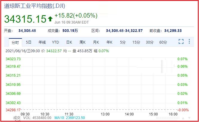 美股三大指数集体高开,道指涨0.05%,纳指涨0.09%,标普500指数涨0.08%。中概教育股普跌,好未来跌逾10%,新东方、高途跌超7%。
