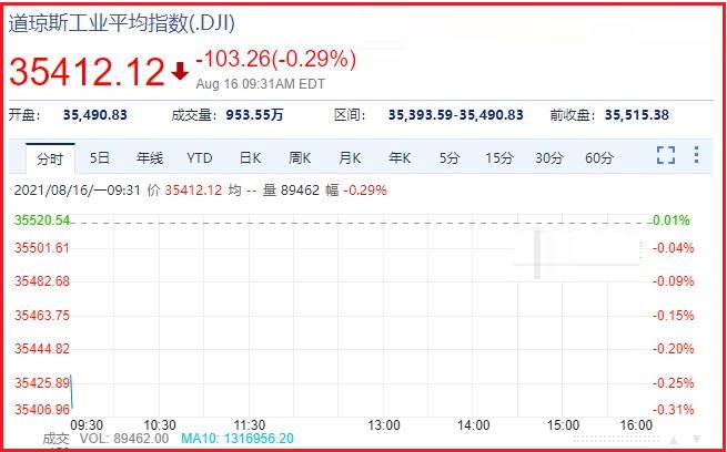 1、截止发稿时间,道琼斯报于:35374.95,成交量:1201.01万