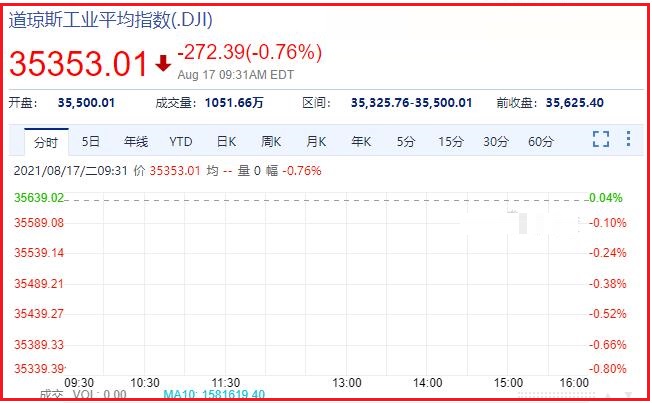 1、截止发稿时间,道琼斯报于:35325.75,成交量:13.3.69万