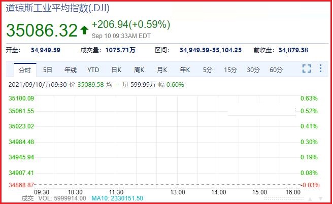 1、截止发稿时间,道琼斯报于:35063.01,成交量:1279.13万