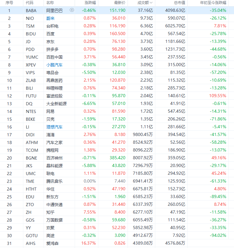 热门中概股继续上涨,知乎涨超7%,掌门教育涨超4%,腾讯ADR涨超1%,蔚来汽车涨近0.9%,拼多多涨近0.8%,百度涨近0.4%,京东涨近0.3%,而中国恒大粉单跌超11%,新东方跌超1%,网易有道跌约1%,阿里巴巴跌逾0.4%,小鹏汽车和理想汽车分别跌近0.4%和逾0.1%,森淼科技涨超19%。