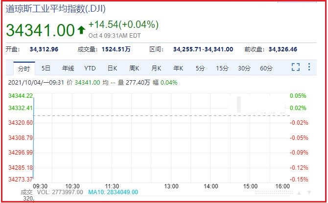 1、截止发稿时间,道琼斯报于:34322.38,成交量:1896.78万