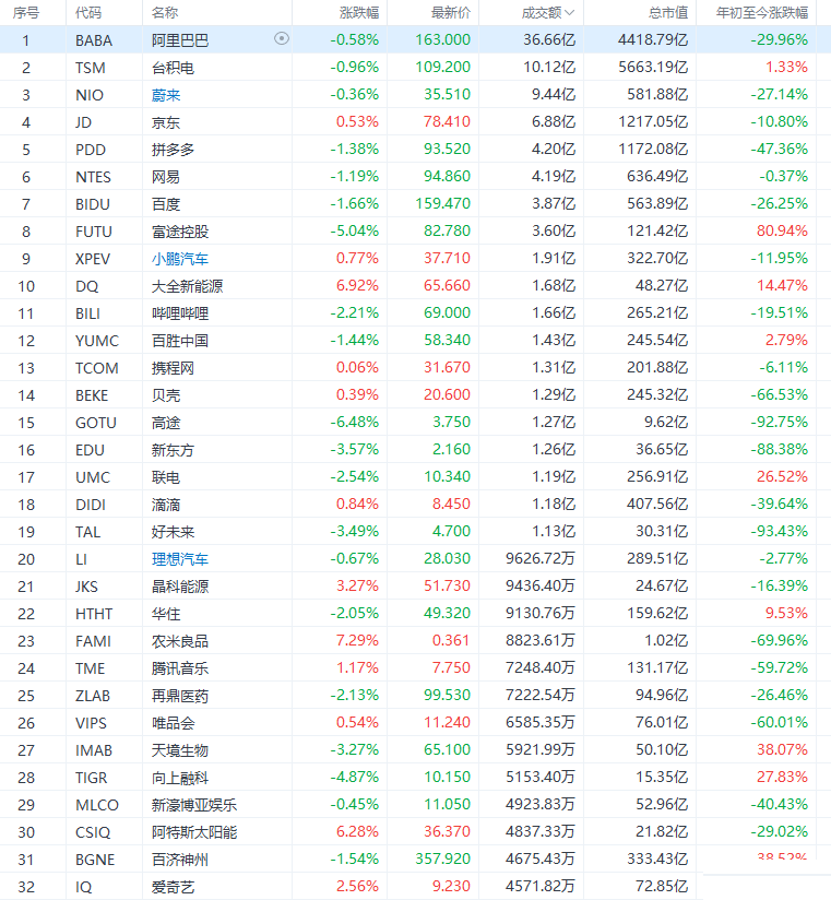 热门中概股多数下跌,高途教育跌超6%,雾芯科技跌超4%,新东方和好未来跌超3%,哔哩哔哩和瑞幸咖啡粉单跌超2%,腾讯ADR、百度、拼多多跌超1%,理想汽车跌近0.7%,阿里巴巴跌近0.6%,蔚来汽车跌逾0.3%,而爱奇艺涨超2%,微博涨超1%,小鹏汽车涨近0.8%,京东涨逾0.5%。