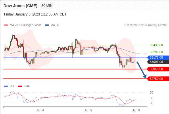 交易策略: 在 33175.00 之下,看跌,目标价位为 32945.00 ,然后为 32750.00 。
