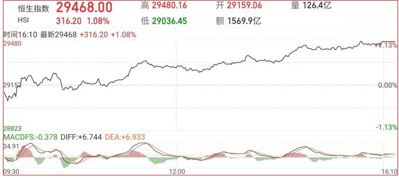 1.恒指昨早先轻微高开8点至29159点,其后进入整固之中,拉锯于29036点至29231点之间,技术上仍处徘徊状态之中。由于今日是六月份首个交易日,故大市之形态仍未现。午后恒指继续走高,截至收盘,恒指涨1.08%,报29468点,国企指数涨0.93%,红筹指数涨0.1%;
