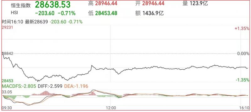 1.恒指昨早市先高开104点至28946点。但由于买盘不继,加上零碎沽压又再渗着涌现,故整个大市卒渐转反复,恒指一度回落389点至28453点,港股高开低走。截至收盘,恒指跌0.71%,报28638.53点,国企指数跌0.76%,红筹指数跌1.26%;