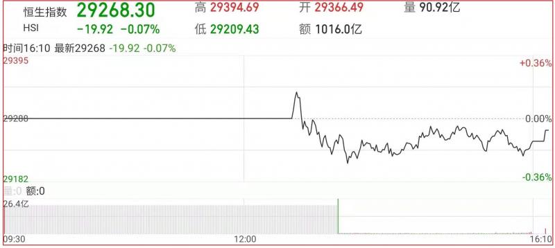 1.昨日共有两个半小时之交易时间。适逢是即月期指转仓高峰日,对一众好仓大户而言该有利,至少可减散维稳资金,但对一众于早前已手持淡仓者则颇无奈。于下午1时30分恢复交易。截至收盘,港股恒指跌0.07%,报29268.30点,国企指数跌0.14%,红筹指数跌0.18%;