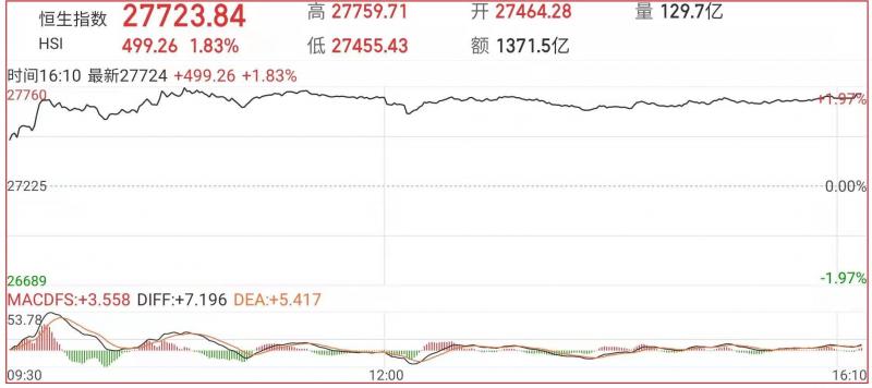 1.恒指昨早市先高开240点至27464点,其后略作拉锯而轻回至27455点。惟由于沽压收敛,加上买盘态度略为进取,故市势得以再进一步推升,港股高开高走。截至收盘,港股恒指涨1.83%,报27723.84点,国企指数涨1.79%,红筹指数涨1.50%;