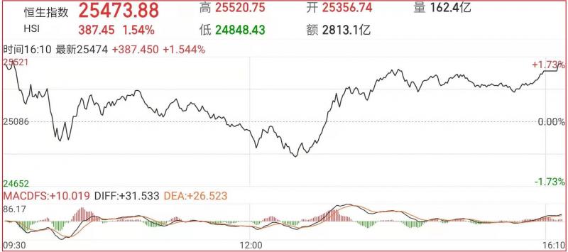 1.恒指昨早先高开270点至25356点,其后在伺低回补之买盘追捧下再进一步升至25520点,即其时大市已回升434点。但由于高台买盘却步,加上零碎沽压再现,故整个大市卒掉头回落至24917点方渐见喘定,尾盘涨幅进一步扩大。截至收盘,恒生指数涨1.54%,报25473.88点,国企指数涨2.16%,报9071.1点,红筹指数跌0.47%,报3607.49点;