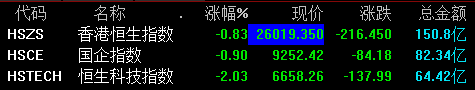 港股三大指数开盘下挫,均由涨转跌。恒指、国指跌近1%,恒生科技指数跌2%。大型科技股网易暴跌超14%,腾讯暴跌近8%,快手、美团均跌超3%。