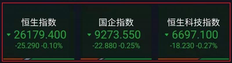 1.上周五恒指早市先高开58点至26262点,但由于买盘却步,加上零碎沽压再现,故整个大市卒开始反复,而恒指亦一度急回至26002点方略见喘定,即其时恒指已稍跌穿10天线(约在26027点左近)。截至收盘,恒生指数跌0.1%,报26179.4点,国企指数跌0.25%,报9273.55点,红筹指数跌0.34%,报3686.24点;