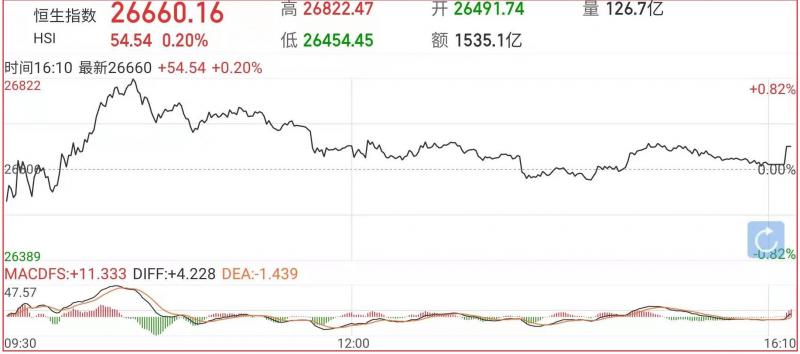 1.恒指昨早市先低开114点至26491点,其后再进一步跌至26454点方见喘定。由于低处未有追沽压力,而买盘亦渐见涌现,故整个大市卒开始在稳步中缓慢推上。截至收盘,恒指涨0.20%,报26660.16点,国企指数涨0.52%,红筹指数涨1.48%;