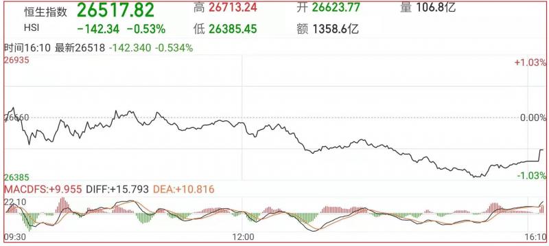 1.恒指昨早市先轻微低开37点至26623点,其后持续整固于窄幅之内,上落于26540点至26713点之间。,截至收盘,恒指跌0.53%,报26517.82点,国企指数跌0.87%,红筹指数跌0.42%;