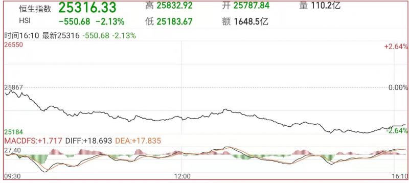 1.大市昨早市先低开80点至25787点,其后略为后抽至25832点。但在买盘虚怯下,大市确未有动力作进一步推升,惟沽压却阵阵涌现,故整个大市又再在反复中续往下跌,截至收盘,恒生指数跌2.13%,报25316.33点,国企指数跌2.56%,报8916.02点,红筹指数跌1.55%,报3808.38点;
