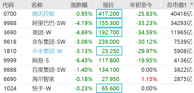 隔夜美股中概股集体下挫拖累,今早港股市场科技股继续下跌,阿里巴巴、哔哩哔哩、快手创上市新低,腾讯创15个月新低,美团跌破200港元关口。