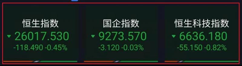 1.恒指昨早市先轻微高开5点至26141点,其后曾略作拉锯而低见26020点,惟在维稳买盘支持下,大市再缓步升至26229点。午后跌幅扩大。截至收盘,恒生指数跌0.45%,报26017.53点,国企指数跌0.03%,红筹指数涨0.34%;