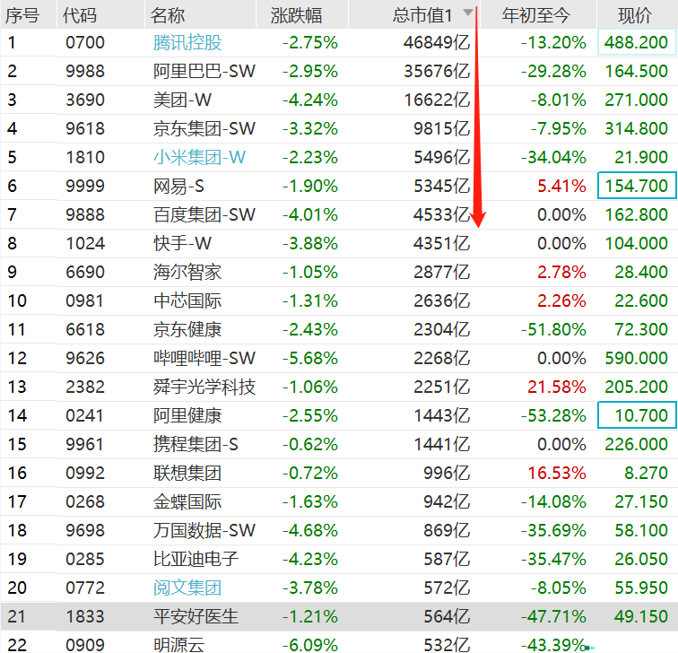 隔夜美股热门中概股集体收跌,拖累今早港股市场科技股集体走低,恒生科技指数跌近3%。其中,腾讯、阿里、小米、京东健康、阿里健康均跌超2%,美团、百度、比亚迪电子跌超4%,京东、快手跌超3%,哔哩哔哩跌超5%。