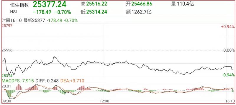 1.上周五恒指早市先低开89点至25466点,其后一直处反覆偏软中,上落于25314点至25516点之间,午后跌幅扩大。截至收盘,恒生指数跌0.7%,国企指数跌1%,红筹指数涨0.12%;