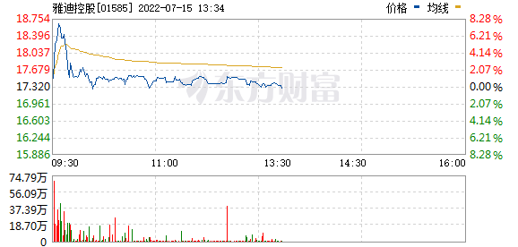 今日走势分析:中期盈喜披露后,雅迪控股(01585)盘初继续上扬,并触及18.74港元,创去年6月以来新高。公司预期于截至2022年6月30日止6个月所取得的纯利将较去年同期增加不少于约50%。截至发稿,雅迪控股涨6.35%,报18.42港元,成交额0.82亿港元。