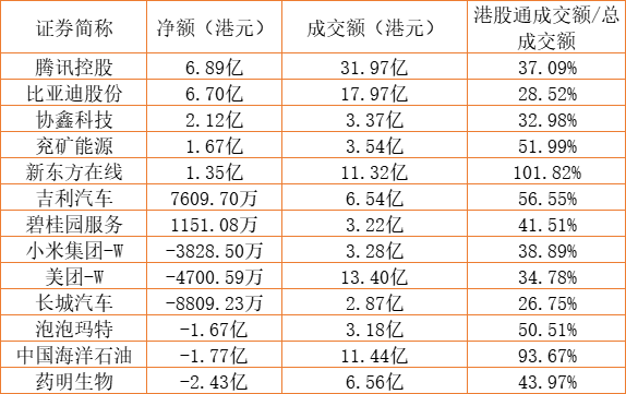 亚汇网7月15日港股通数据统计显示:腾讯控股净买入额居首,达6.89亿港元,药明生物净卖出额居第一位。(亚汇网编辑:陌尘)