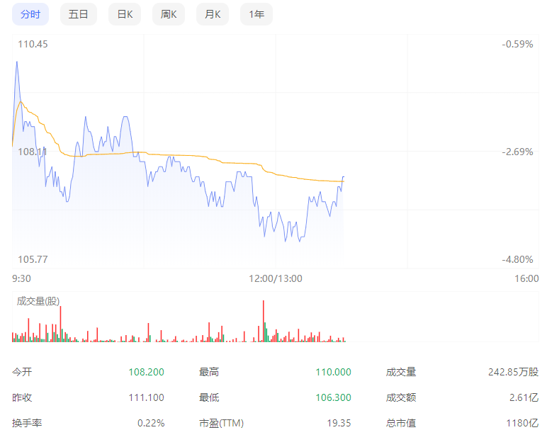 今日走势分析:舜宇光学(02382)午后再跌超4%,截至发稿,跌3.78%,报106.9港元,成交额2.46亿港元。