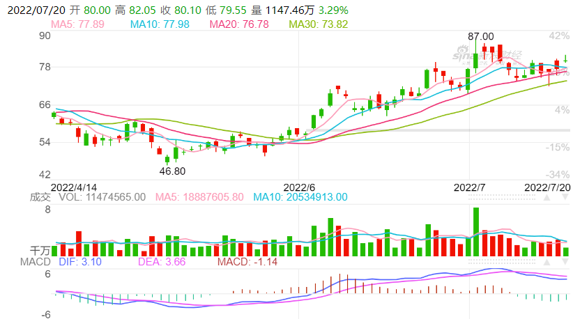 今日走势分析:药明生物(02269)早盘再涨超5%,截至发稿,涨4.26%,报80.85港元,成交额7.94亿港元。