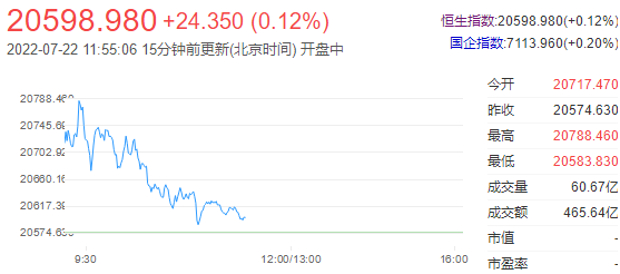 截至午间收盘,恒生指数(20606.961 32.33 0.16%)涨0.12%,报20598.98点;国企指数涨0.2%,红筹指数跌0.37%。恒生科技指数(4597.14 14.78 0.32%)涨0.35%,快手涨3.46%,哔哩哔哩涨1.58%,百度涨1.73%。