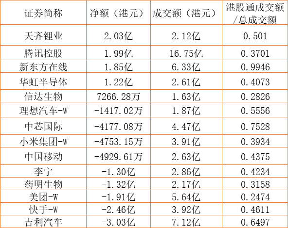 亚汇网8月8日港股通数据统计显示:天齐锂业(002466)净买入额居首,达2.03亿港元,吉利汽车净卖出额居第一位。(亚汇网编辑:陌尘)