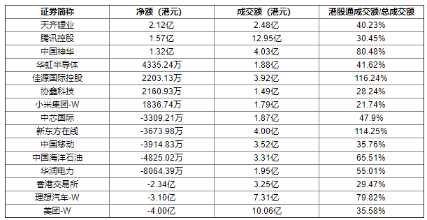 今日港股通数据一览:天齐锂业净买入额居首(2022/8/9)
