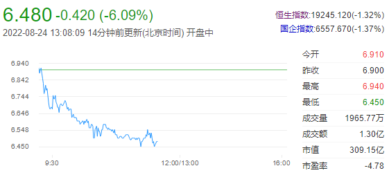 今日走势分析:中远海能(01138)午前跌近6%,截至发稿,跌5.8%,报6.5港元,成交额1.06亿港元。