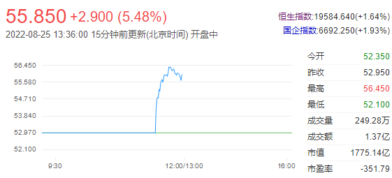 今日走势分析:京东健康(06618)午盘活跃,升超5%。瑞银点评称,公司上半年业绩优于市场及本行预期。中金上调公司2022年收入及净利润预测。截至发稿,京东健康涨5.19%,报55.70港元,成交额1.48亿港元。