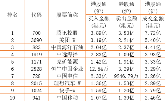 亚汇网实时数据统计:截至8月30日收盘,腾讯控股、美团-W、中国海洋石油居港股通(沪)成交前三,新东方在线、美团-W、快手-W位居股通(深)成交前三。