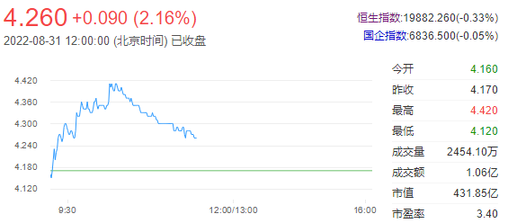今日走势分析:中国银河(06881)绩后涨超6%,截至发稿,涨5.52%,报4.4港元,成交额8419.28万港元。