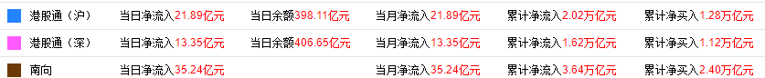 9月1日,南向资金合计净买入25.61亿港元。其中,港股通(沪)净买入17.62亿港元,港股通(深)净买入7.99亿港元。