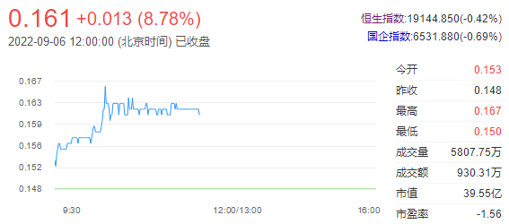 今日走势分析:丰盛控股(00607)迎来绩后四连升,早盘涨约10%,期间累计升近35%。今年上半年,丰盛控股实现除税后溢利2.06亿元,而去年同期亏损3.65亿元。截至发稿,丰盛控股涨10.14%,报0.163港元,成交额0.10亿港元。