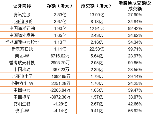 亚汇网9月7日港股通数据统计显示:腾讯控股净买入额居首,达3.83亿港元,快手-W净卖出额居第一位。(亚汇网编辑:陌尘)