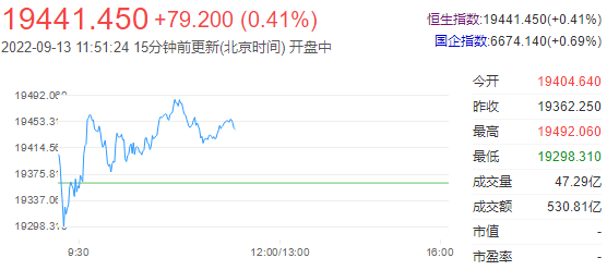 截至午间收盘,恒生指数涨0.41%,报19441.45点;国企指数涨0.69%,红筹指数涨0.56%。恒生科技指数涨0.46%,阿里涨2.39%,网易涨0.72%,小米涨0.74%。