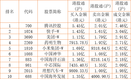 亚汇网实时数据统计:截至9月16日收盘,腾讯控股、快手-W、美团-W位居港股通(沪)成交前三,盈富基金、新东方在线、快手-W位居股通(深)成交前三。