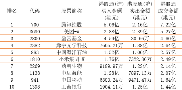 亚汇网实时数据统计:截至9月21日收盘,腾讯控股、美团-W、盈富基金位居港股通(沪)成交前三,盈富基金、新东方在线、中国移动位居股通(深)成交前三。