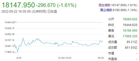 9日22日下午,港股收盘,行情大幅低开后窄幅震荡,香港恒生指数跌1.61%,盘初一度跌破18000点,创近11年新低;恒生科技指数跌1.70%。市场呈跌多涨少态势。盘面上,个人用品、容器与包装、虚拟现实概念、彩票概念、小米概念、生物质能发电概念等板块表现活跃。电脑与外围设备、航空公司、生命科学工具、医疗保健设备、双重主要上市中概股、汽车热管理、回港中概股、太阳能概念等板块领跌。港股后市展望:国信证券认为,目前来看,在国内经济复苏较为平缓的背景下,海外投资者缺乏指向性 一致的利好因素。短期内或继续看到港股总 体呈现出内资稳步加仓,外资摇摆不定的情况。但稍加拉长周期看,在经济复苏的趋势得到明确后,货币政策有望转稳健,人民币汇率有望企稳或回升。届时,对海外投资者来说,港股将是有多重利好因素叠加的市场。综上,依然坚持目前港股下行空间有限,上行弹性充裕的观点。