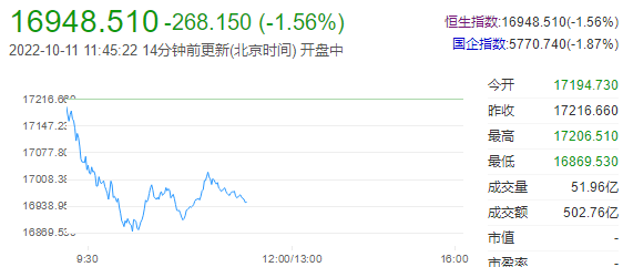 港股早上小幅低开21点后,曾收窄至仅跌10点,恒指报17206,但已是全日高位。随后反覆偏软,续向下寻底 ,更失守17000关口。再扩大跌幅至低见16869,最多跌347点,并创自2009年5月,近13年的低位。恒生科技指数早段低开亦仅是小跌13点。随后科技股再遭抛售,科技指数亦跟再扩大跌幅至低见3261,最多跌137点,同创自推出后的历史纪录新低。北水亦见小量流入,也仅是10亿元,似乎是动力不足,未能扭转跌势。