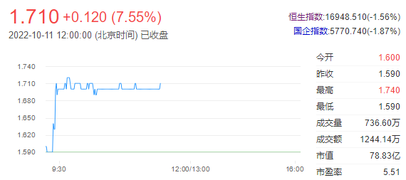 今日走势分析:中海石油化学(03983)早盘低位反弹,升约7%。机构数据显示,节后首日,国内尿素市场稳中上扬;甲醇节后大幅拉涨,涨幅集中在110-320元/吨不等。中海石油化学来自尿素和甲醇产品的营收占比达到57.3%。截至发稿,中海石油化学涨6.92%,报1.70港元,成交额0.11亿港元。
