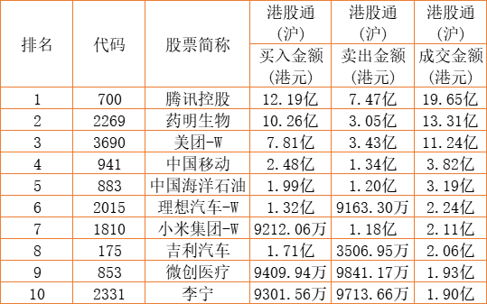 亚汇网实时数据统计:截至10月14日收盘,腾讯控股、药明生物、美团-W位居港股通(沪)成交前三,腾讯控股、美团-W、药明生物位居股通(深)成交前三。